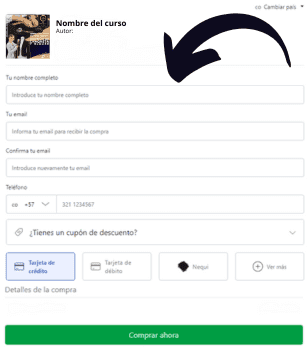 Además, seguido de esto encontrarás un botón para poder inscribirte, ahí te aparecerá el método de pago disponible en tu país y solo tienes que seguir los pasos, por favor no olvides de colocar bien tu correo ya que allí te llegará el acceso a la formación